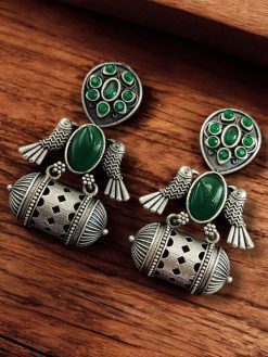 Embrace the charm of timeless elegance with our Handcrafted Antique Silver Bird Jhumkis, designed for those who appreciate the beauty of traditional Indian craftsmanship. These exquisite earrings showcase a unique blend of intricate artistry and cultural heritage, making them a must-have accessory for any jewelry lover.