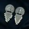 The soft, luminous pearls add a classic contrast to the oxidized silver, making these jhumkas even more graceful. The dangling pearl drops bring movement and elegance to the design, creating a perfect balance of tradition and style. Whether paired with ethnic wear or fusion outfits, these earrings add an element of sophistication and grace.
