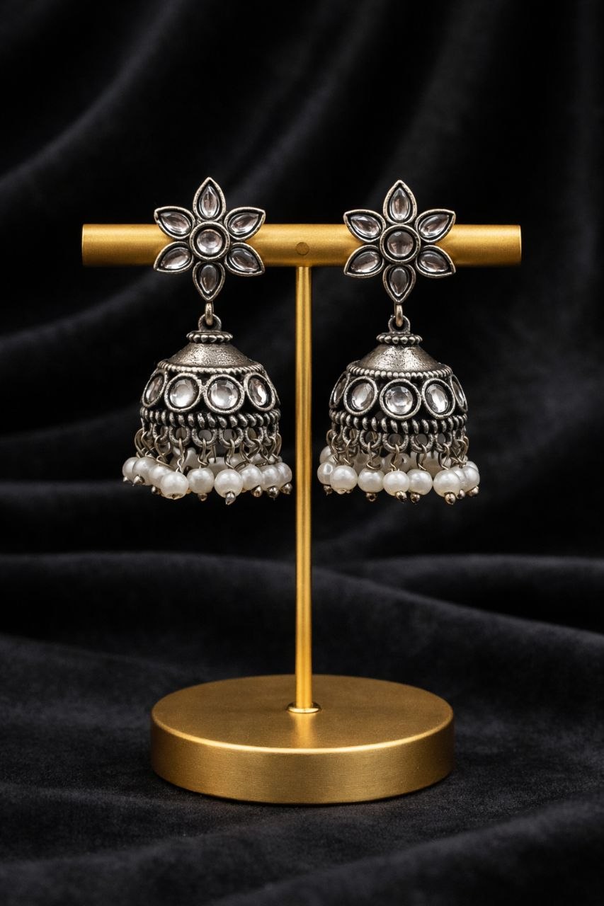 Silver Jhumka Earring Traditional Jewelry for Pearl Work Detailing