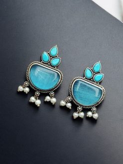 Silver Look alike Stone Earrings | Best Oxidised Stud Jewelry