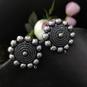 Designer Round Shape Oxidised Stone Work Stud Earrings For Girls