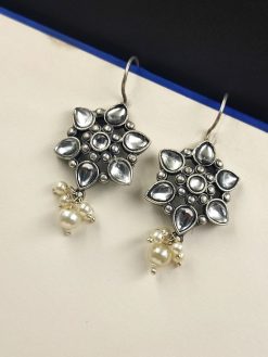 Introducing our Silver Look Like Oxidised Stone Stud Earrings designed especially for girls. These Silver Replica earrings are a perfect blend of timeless elegance and Hook Dangler, making them an ideal accessory for any occasion.