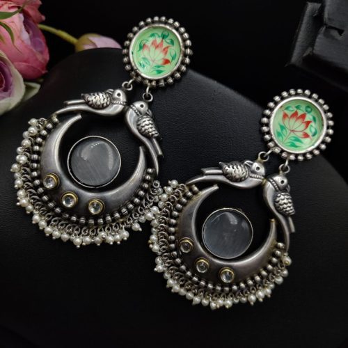 These earrings are a perfect choice for those who appreciate intricate designs, nature-inspired motifs, and the timeless beauty of pearls. With their combination of silver craftsmanship, peacock-inspired design, and delicate pearl accents, these earrings make a stunning addition to any jewelry collection.