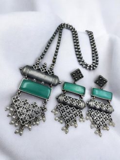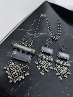 Elevate your jewelry collection with our Antique Touch Silver Look Necklace Set, a piece that embodies the perfect blend of tradition, style, and elegance. Order now and experience the timeless beauty of oxidized Monalisa stone jewelry!