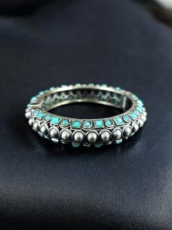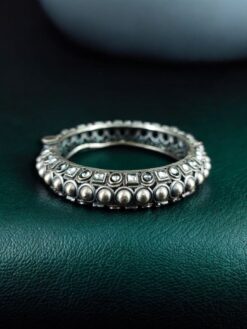 Oxidized Stone Work Silver Replica Openable Bangle | Traditional Beautiful Jewelry