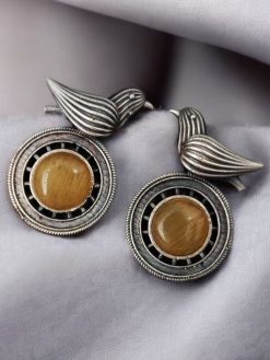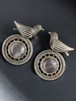 Introducing the Silver Look-alike Oxidized Bird Stud Earrings with Stunning Monalisa Stone – a perfect blend of vintage charm and contemporary elegance. These earrings feature a unique design that brings together the mystique of oxidized silver with the captivating beauty of the Monalisa stone, making them an ideal choice for anyone who appreciates the artistry of handcrafted jewelry.