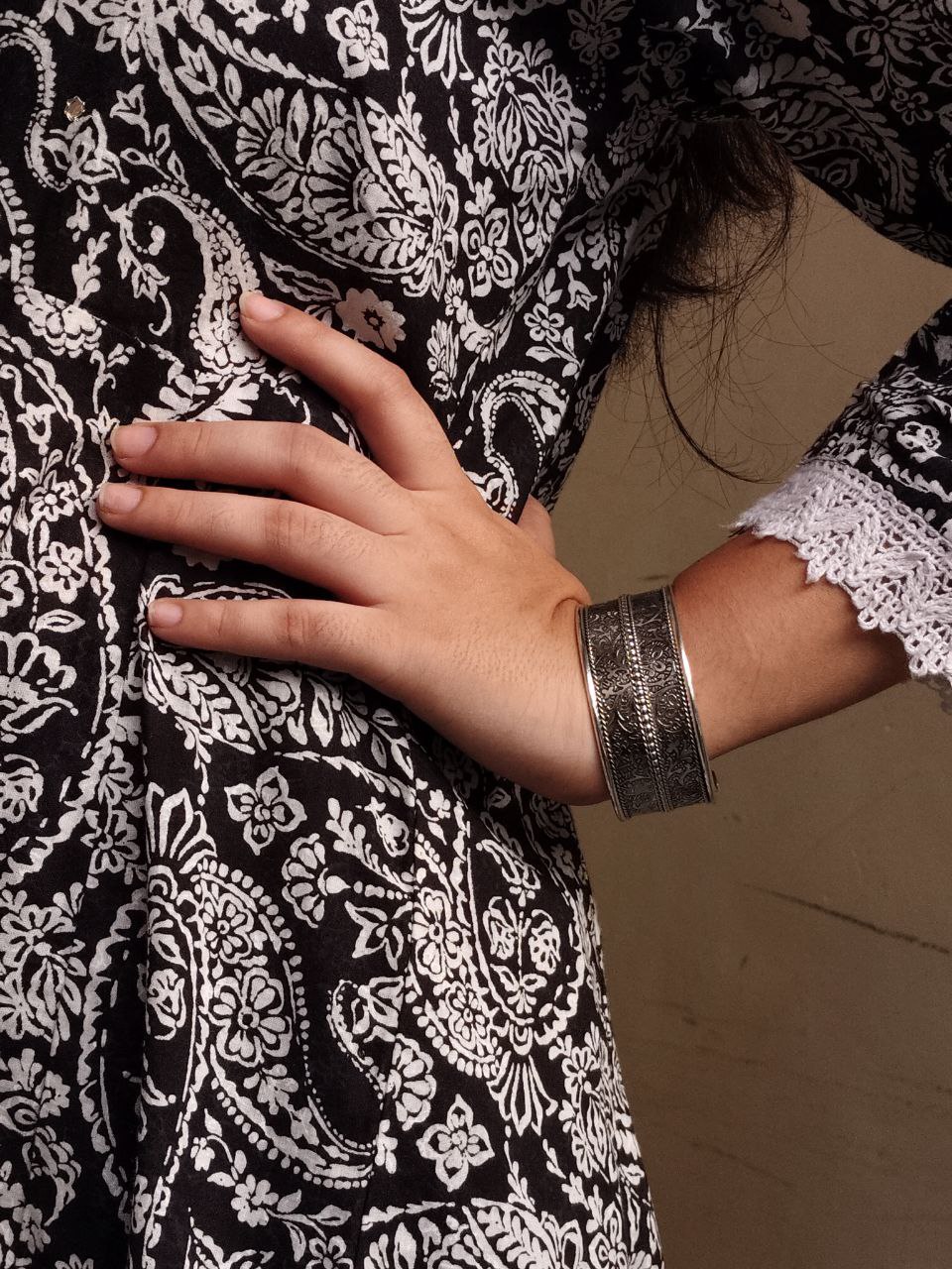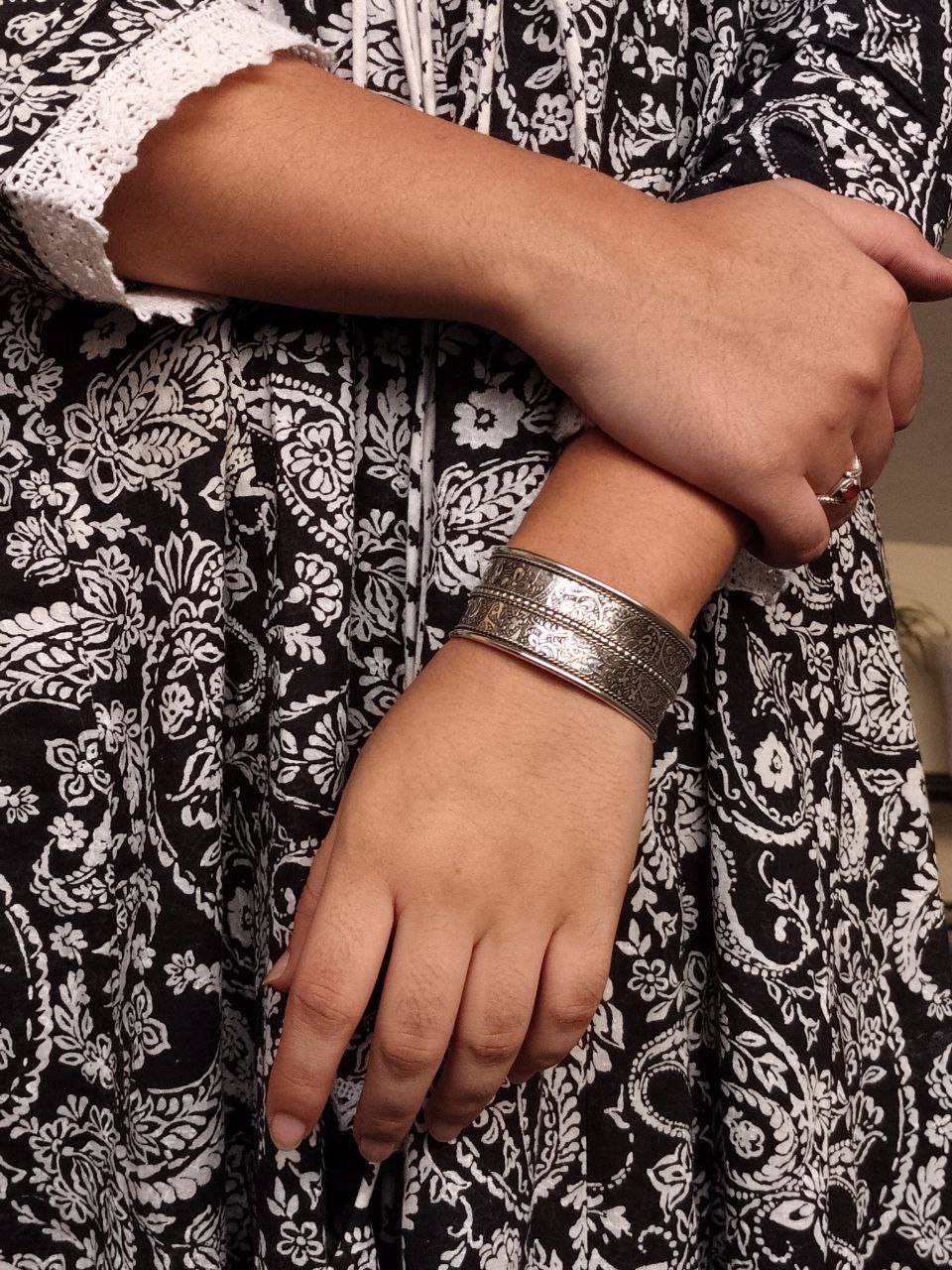 With its silver-plated finish, the bracelet gives you the luxurious shine of real silver without the high maintenance. The slight oxidized touch adds depth and a vintage charm, making it suitable for ethnic, western, and fusion outfits. Wear it with kurtis, sarees, lehengas, dresses, jeans, or casual tops — its versatility makes it a must-have accessory in every jewelry collection.