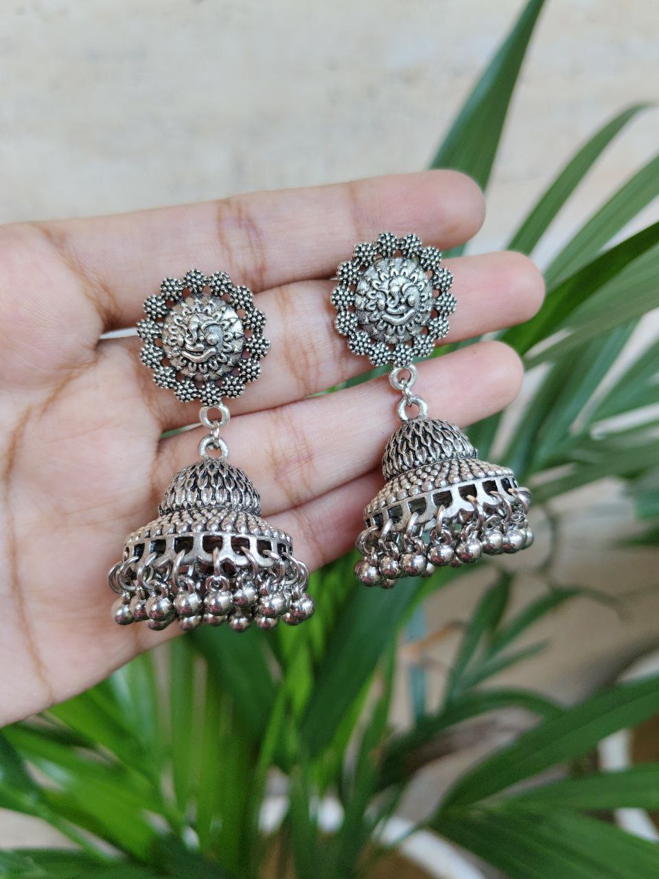 Silver Plated Dangler Jhumki Earrings Ghungroo Detailing