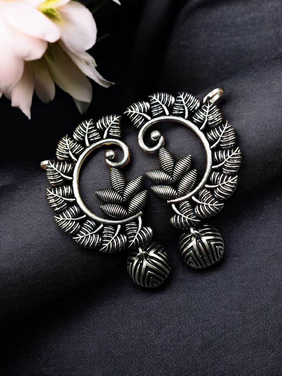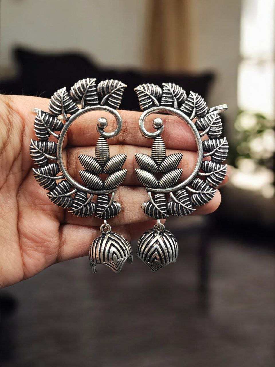 Add this exquisite silver plated leaf design jhumka earcuff to your collection and embrace effortless elegance with every wear.