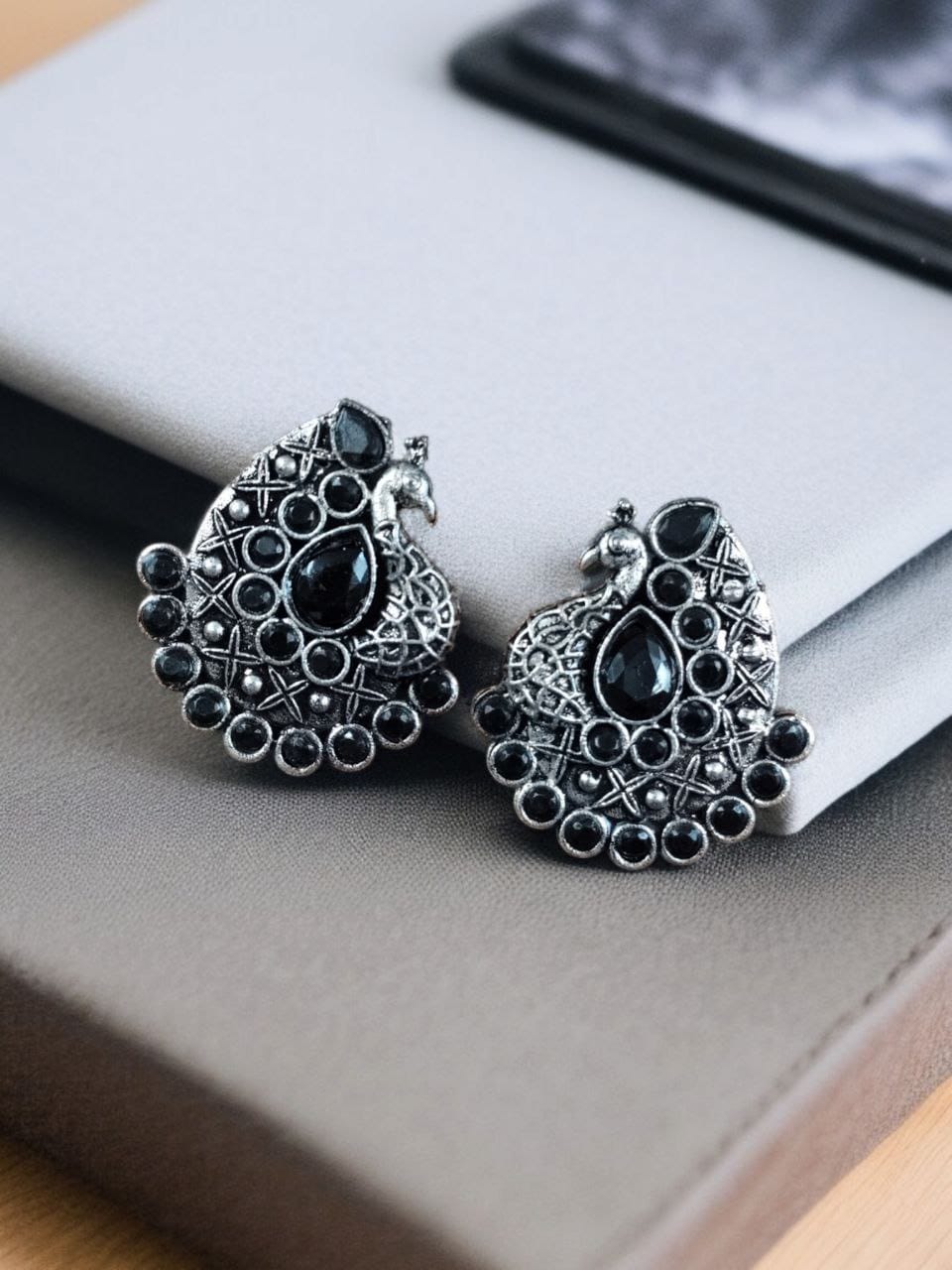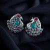 Crafted from high-quality alloy with a durable silver plating, these earrings boast a stunning oxidized finish that enhances their antique charm. The intricate stone setting adds a shimmering effect, making them a statement piece for jewelry lovers. Designed to be lightweight and comfortable, these stud earrings are perfect for all-day wear.