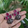 Antique Silver Look Like Designer Tringle Floral Art Stud Earrings For Girls