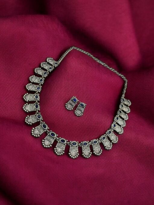 Made from high-quality materials, this Oxidized silver jewelry is built to last. The oxidized silver finish is resistant to tarnish and wear, ensuring that the set retains its beauty and luster over time. The secure clasps and sturdy construction guarantee that the necklace and earrings stay in place, giving you peace of mind while you enjoy your special moments.