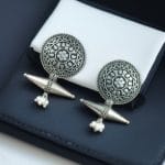 Elegant floral motif silver replica stud earrings with an oxidized finish, perfect for everyday wear.