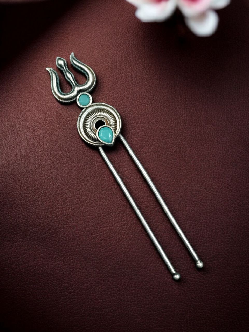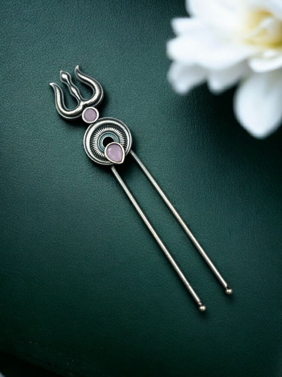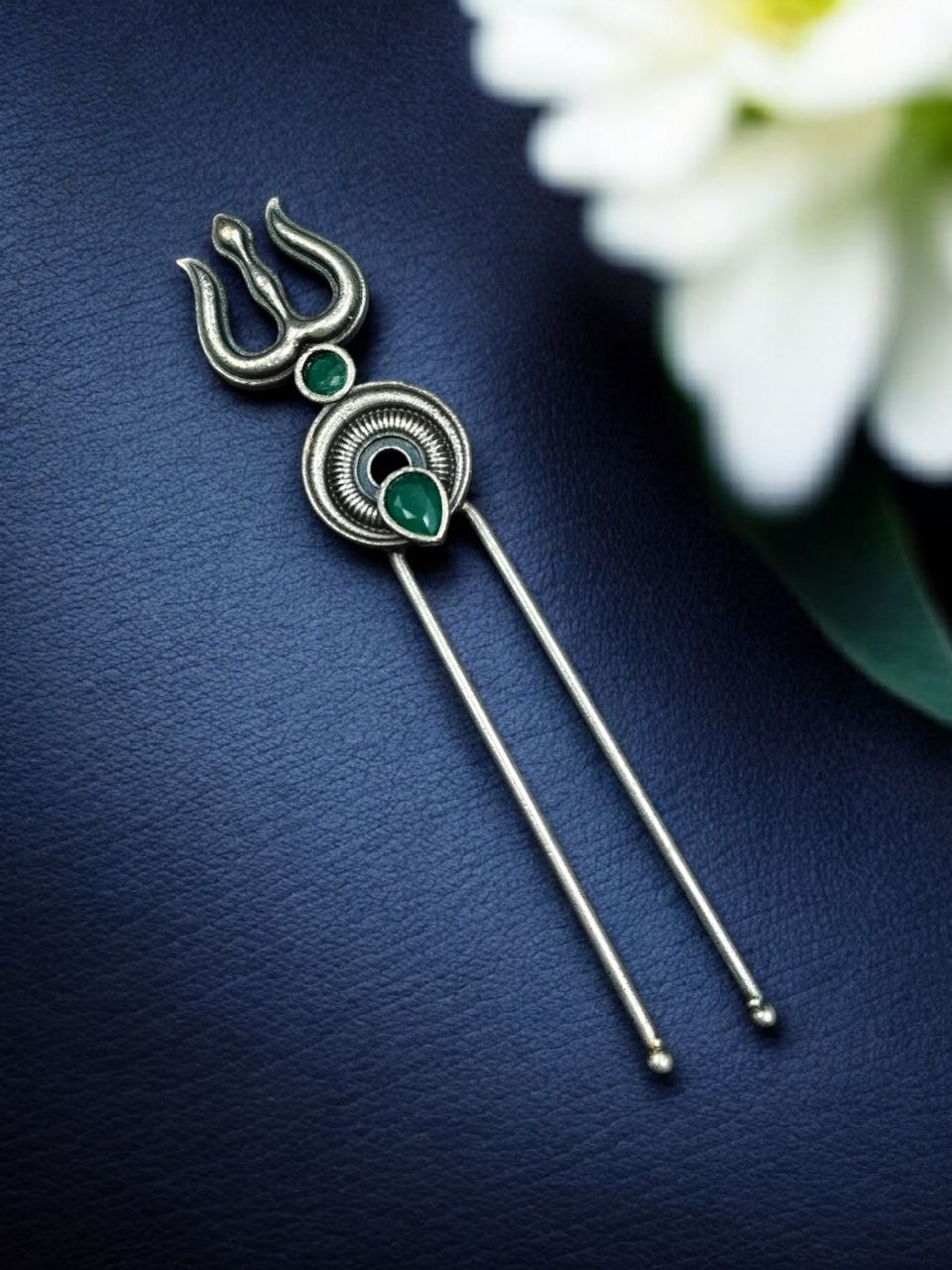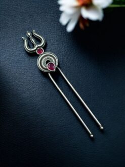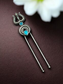 The Silver Trishul Hairpin is a perfect addition to your accessory collection if you enjoy jewelry that carries both style and cultural symbolism. Its elegant design makes it suitable for festivals, temple visits, celebrations, and traditional gatherings. With its graceful structure and symbolic design, this hairpin adds a unique touch to your appearance while keeping your hairstyle neat and stylish. Experience the perfect blend of tradition, spirituality, and modern fashion with this beautifully crafted Silver Trishul Hairpin.