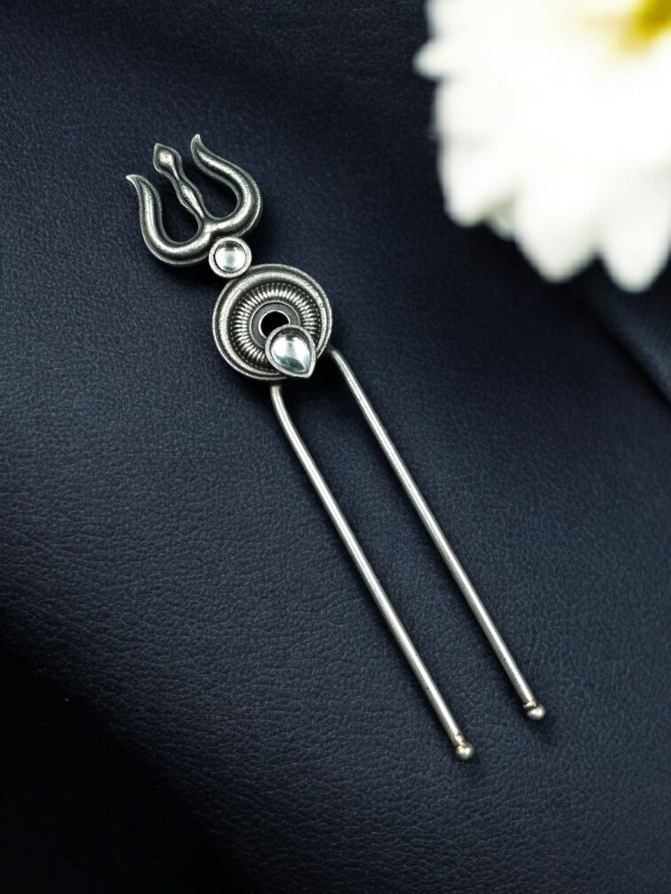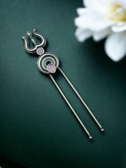 Hair accessories inspired by traditional symbols have become increasingly popular among women who appreciate meaningful jewelry pieces. Silver Trishul Hairpin design in this hairpin reflects spiritual significance while maintaining a modern and stylish look. It pairs perfectly with ethnic outfits such as sarees, lehengas, and salwar suits, while also complementing contemporary hairstyles. The elegant silver tone enhances the overall beauty of the accessory without overpowering the hairstyle.