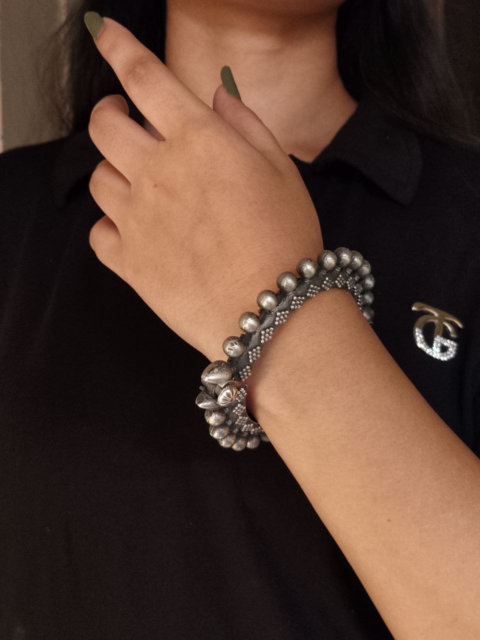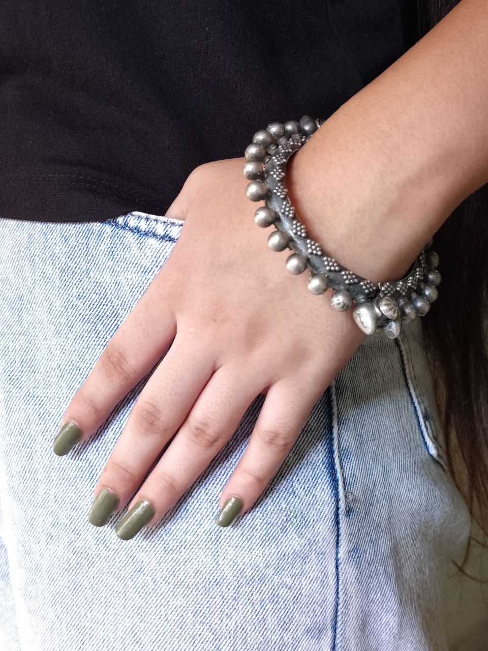 Designed with versatility in mind, this oxidized bangle features a free-size structure that fits comfortably on any wrist. The flexible design ensures that it can be easily adjusted, making it suitable for everyone. Whether worn alone as a statement piece or stacked with other bangles for a trendy layered look, the Antique Spike Bracelet seamlessly adapts to your personal style.