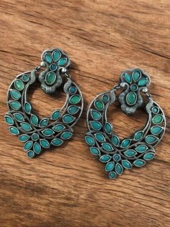 Enhance your ethnic charm with our Traditional Silver Replica Stone Dangler Earrings, a stunning blend of timeless design and elegant craftsmanship. These oxidized dangler earrings are an ideal choice for women who love jewelry that carries a rich cultural essence while remaining stylish and versatile. Crafted with attention to detail, this pair showcases intricate traditional patterns, finished in premium-quality silver plating to mimic the beauty of authentic silver jewelry.