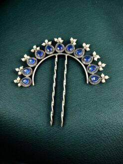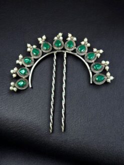 Each pearl and stone is carefully placed to create a balanced and eye-catching design. The oxidized finish adds depth and character to the piece, while the silver replica shine enhances its traditional aesthetic. Lightweight yet sturdy, this juda pin ensures a comfortable hold without slipping, making it suitable for long hours of wear during weddings, parties, family gatherings, or formal events.