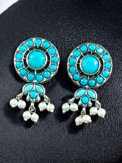 Crafted in a stunning silver plated finish, these earrings replicate the charm of traditional handcrafted jewelry while remaining light and comfortable for daily wear. The central stone work catches the light beautifully, offering just the right amount of sparkle, while the delicate pearl accents add a soft, feminine touch. Whether you’re heading to college, work, family gatherings, or festive celebrations, these Stud Earrings enhance your natural beauty effortlessly.