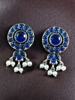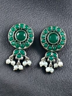 Add a touch of timeless elegance to your everyday style with our Traditional Silver Plated Stud Earrings. Designed with intricate craftsmanship, these earrings beautifully combine the shimmering charm of stones and the subtle grace of pearls—making them a graceful accessory for any occasion. Their elegant yet minimal look brings a refined ethnic appeal that suits girls and women of all ages.