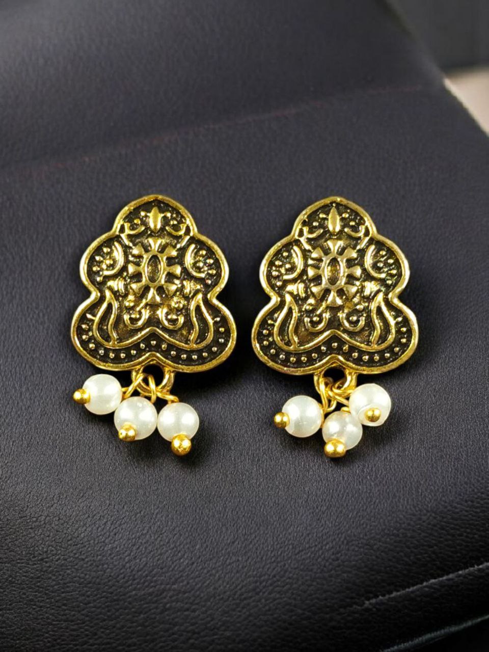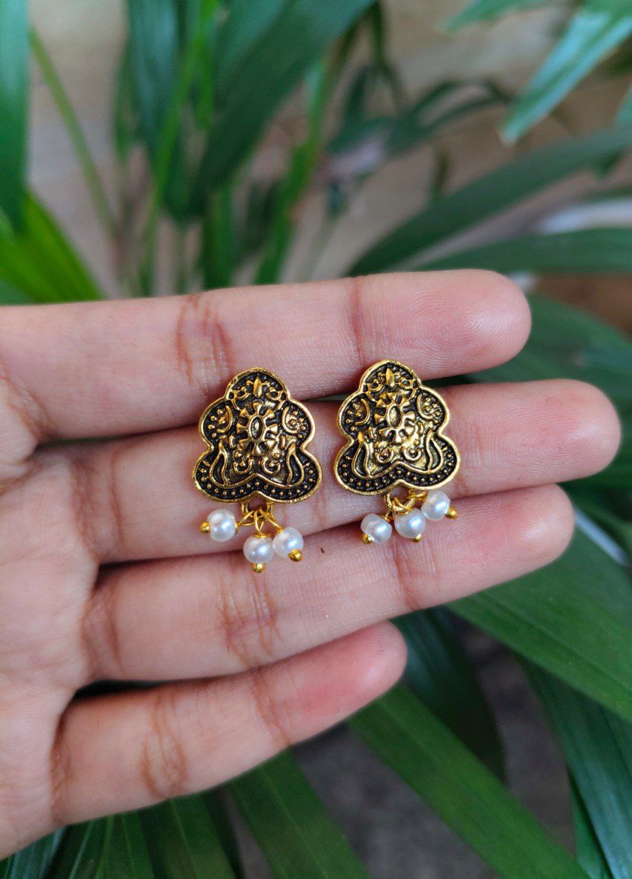 Each earring features a radiant pearl centerpiece, known for its natural luster and classic appeal. The smooth gold plating enhances its beauty, giving it a luxurious finish while maintaining a minimalistic design. Whether it’s for office wear, casual outings, or festive gatherings, these Stud Earrings are versatile enough to suit every occasion and outfit style.