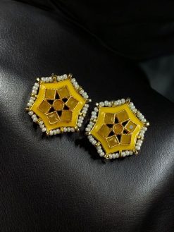 Adding to their appeal is the elegant pearl work that borders the design, creating a soft, feminine touch that pairs beautifully with both ethnic and contemporary outfits. Whether you’re dressing up for a casual day out, a festive gathering, or a small celebration, these earrings promise to be your go-to accessory.