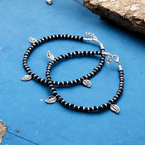 The intricate oxidised silver finish highlights the delicate leaf motifs, adding a graceful touch to your ankle. The dangling crystal beads bring a hint of sparkle, making this anklet versatile enough for both casual outings and semi-formal events. Whether paired with ethnic attire or modern outfits, it effortlessly enhances your look.