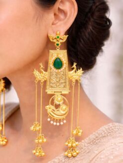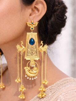 The Kashmiri Earring is crafted using high-quality brass and finished with a detailed polish that highlights its traditional design. Inspired by Kashmiri motifs and patterns, each piece reflects skilled craftsmanship and attention to detail. The sturdy structure ensures long-lasting wear, while the fine finishing helps maintain its shine and elegance over time.