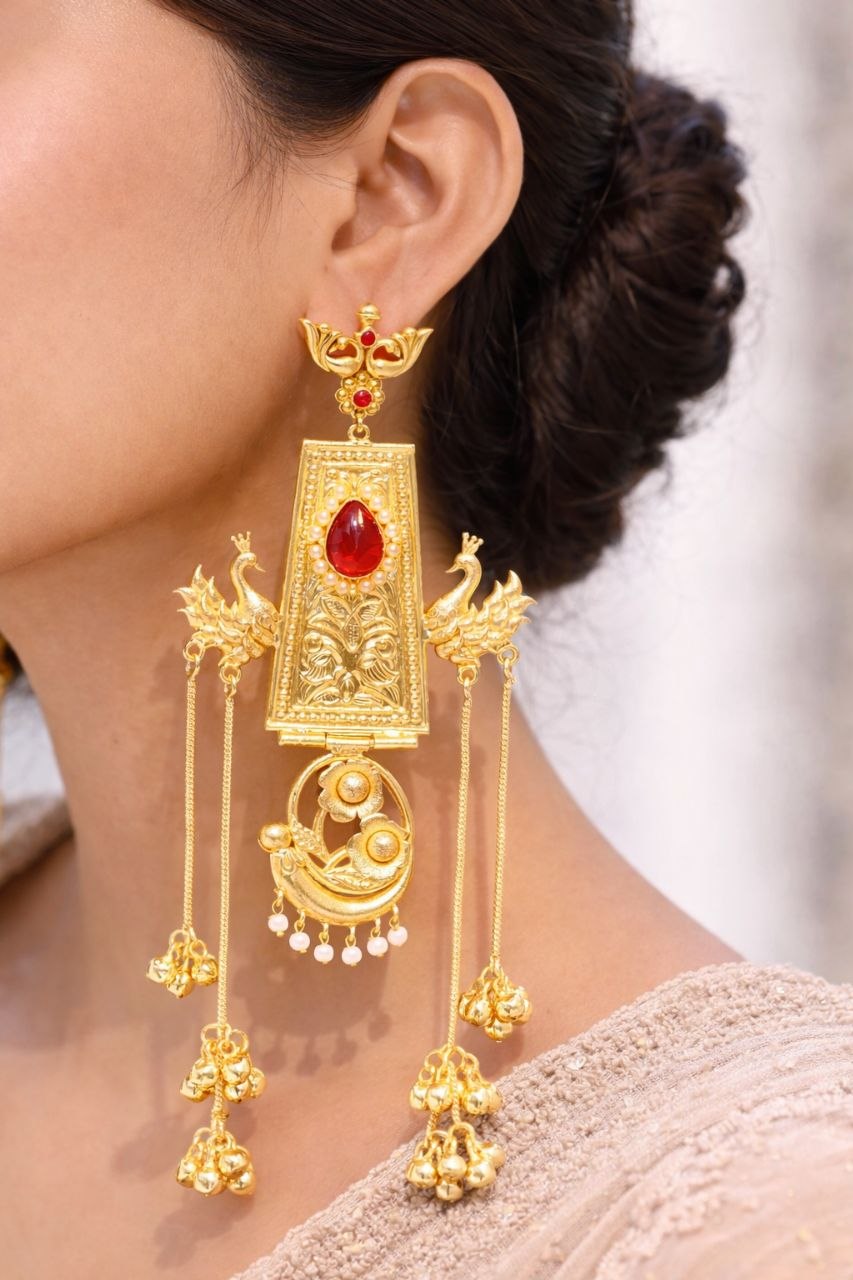 The artistic design often includes intricate carvings and traditional elements that represent cultural heritage. This makes the earrings not just an accessory, but a statement piece that carries a sense of tradition and style together.