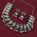 Indulge in the beauty of traditional craftsmanship with our Traditional Oxidised Choker Necklace Set. Embrace the elegance and charm of silver replica jewelry and make a statement with this stunning piece that embodies the rich cultural heritage of India.