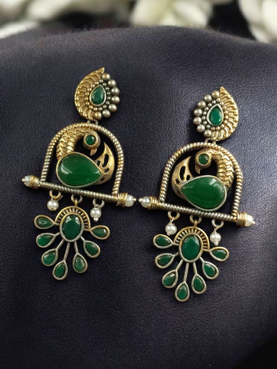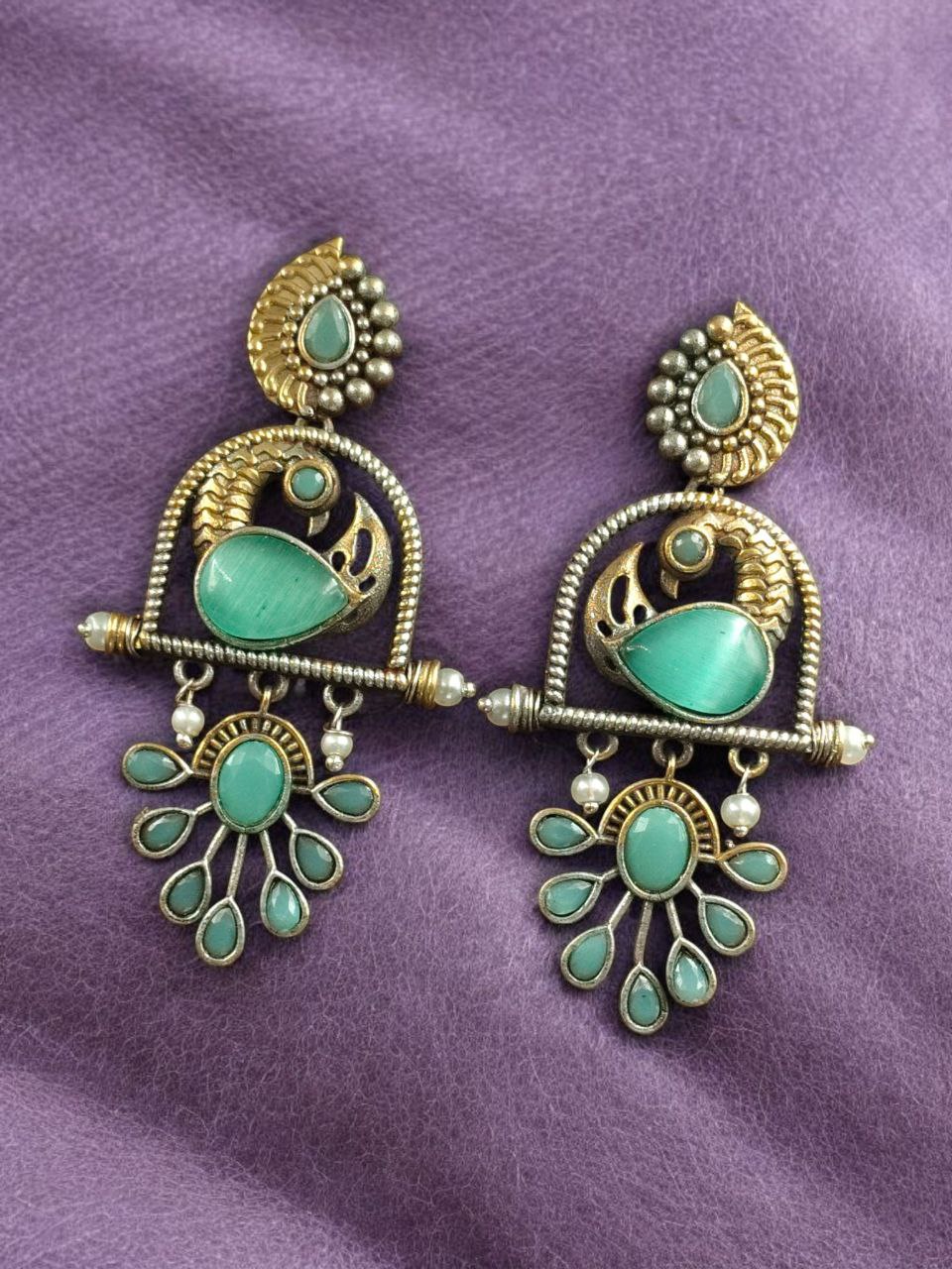 These antique peacock-inspired earrings are more than just accessories – they are a statement of style and tradition. Whether you are attending a festive occasion, a family function, or simply want to elevate your everyday look, these Two-Tone Earrings bring a royal charm that never goes unnoticed. They also make a thoughtful gift for loved ones who appreciate handcrafted ethnic jewelry with a modern twist.