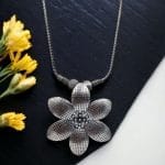 Unique Flower Style Necklace | German Silver Chain Floral Pendant For Girls