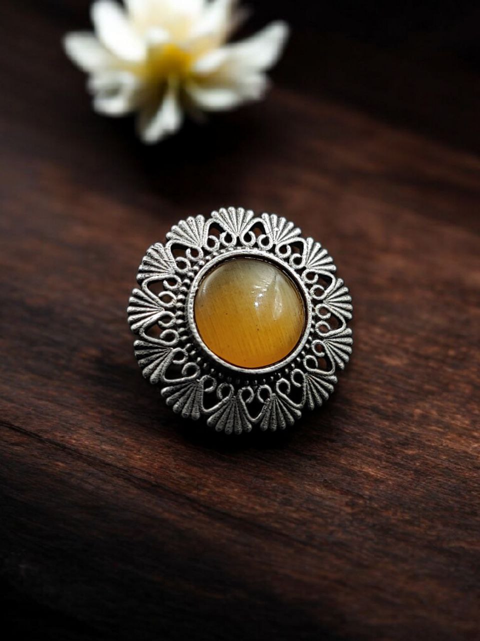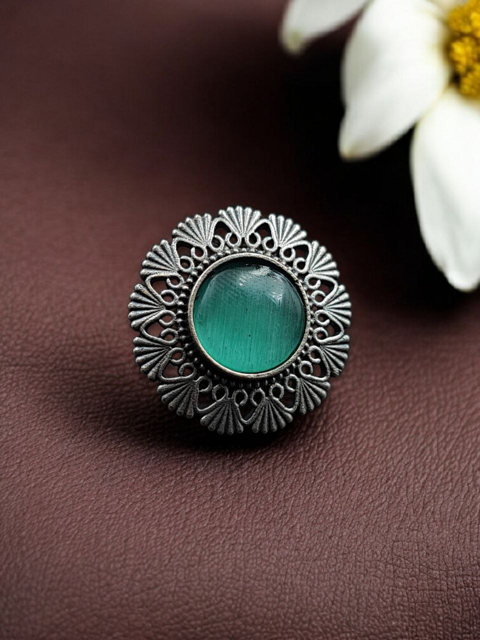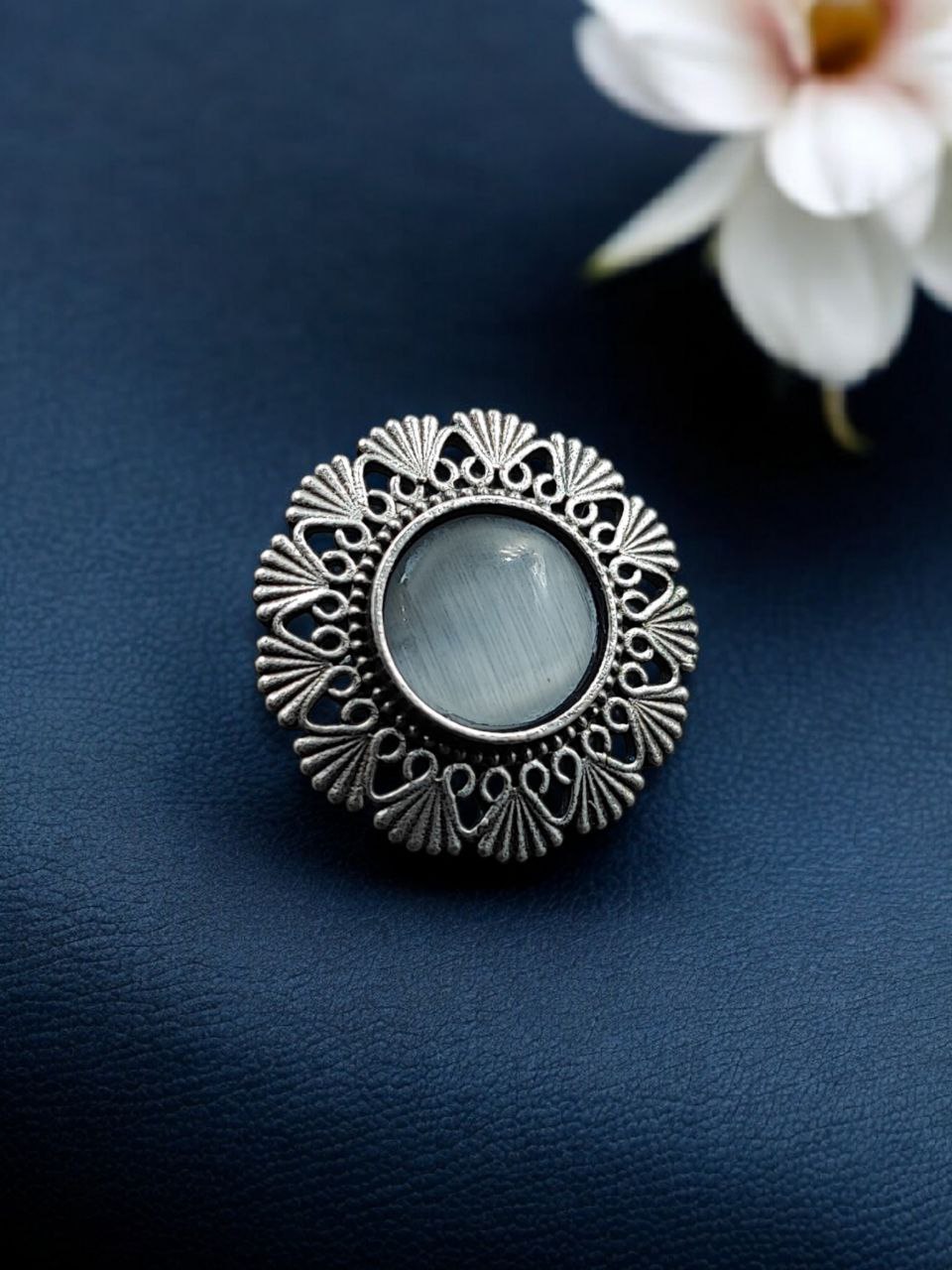 Crafted with a premium silver replica finish, this ring gives you the luxurious look of real silver while remaining lightweight and comfortable for daily wear. The detailed floral art design enhances its antique appeal, making it a perfect accessory for both traditional and contemporary outfits. Whether you are dressing up for a festive celebration, wedding function, office event, or casual outing, this ring effortlessly complements sarees, suits, kurtis, gowns, and even Indo-western styles.