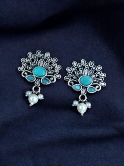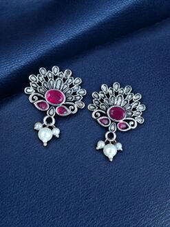 Ideal for girls and women of all ages, these Unique Stud Earrings bring the right balance of simplicity and elegance. Their oxidized silver replica finish adds a touch of vintage charm, while the stone and pearl work enhances their beauty with subtle detailing.