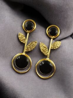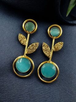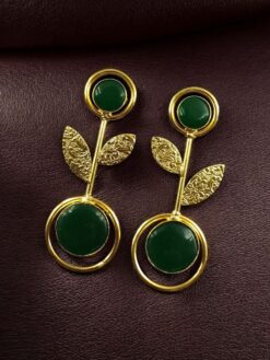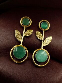 Gold Plated Western Look Earrings | Unique & Ethnic Floral Art with Monalisa Stone Leaf Design