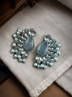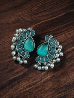 Add these Silver Plated Western Style Earrings with antique oxidized stone & pearl detailing to your accessory box and experience the perfect balance of tradition and modern elegance.